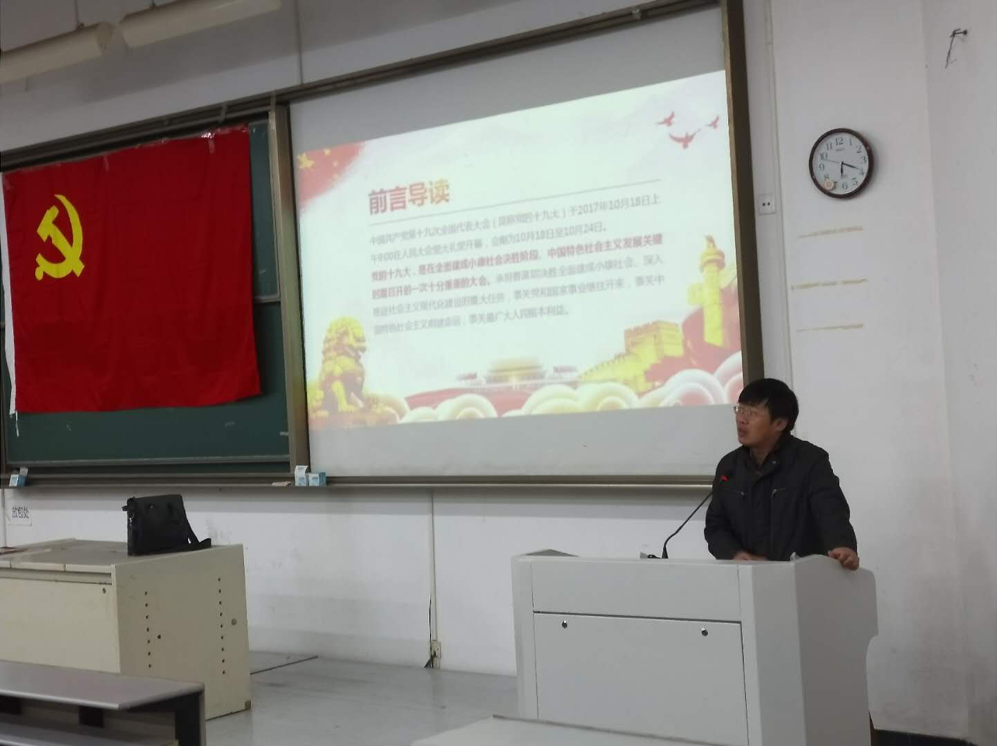 12月9日晚,校宣讲团成员、太阳集团网站8722顾协国副教授代表太阳集团网站8722教工第一、第二党支部在定海校区教学楼130教室面向结对的东海科技学院工程系学生第一、第二党支部120多名学生党员及入党积极分子开展了一场生动的“十九大”精神专题宣讲活动。