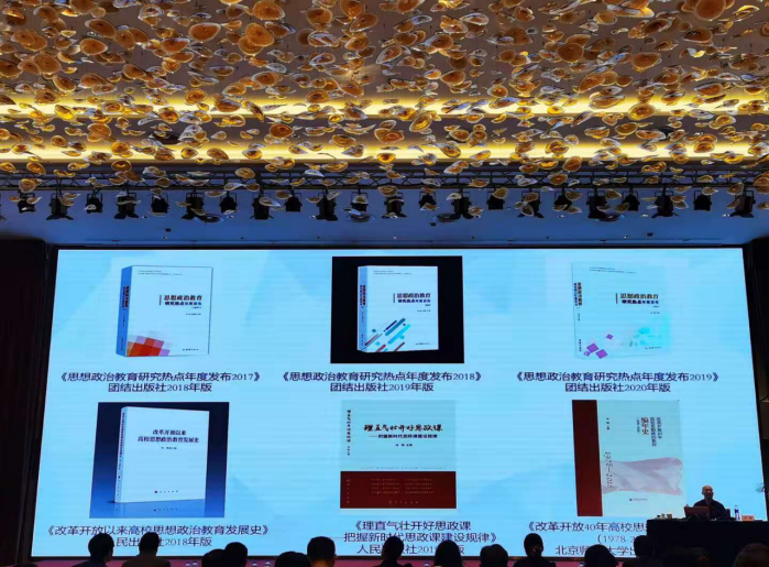 研讨会邀请教育部思想政治工作司原司长、北京师范大学思想政治工作研究院院长、中国教育发展战略学会思想道德建设专委会理事长冯刚教授作《构建新时代高校思想政治工作治理体系》专题报告,冯刚教授就主编的《思想政治教育研究热点年度发布》和2020年思想政治教育研究热点问题及发展趋势进行了说明和解读。