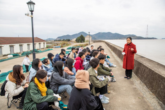 情境化的教学方式使学生的感知脱离书本上的间接经验,带领学生真正做到学思践悟。在人民公社的旧址前,翁志军老师的讲解使大家理解了蚂蚁岛勇争一流背后渔区经济与人民公社诞生的内在关系;在蚂蚁岛创业纪念室前,龚鹰老师娓娓道来的讲述使同学体会到蚂蚁岛筚路蓝缕、艰苦创业背后的奋斗精神;在三八海塘上,伴随着海风的吹拂,贝静红院长的教学使每位学生感受到蚂蚁岛女性敢啃骨头、不畏艰难创造的奇迹。