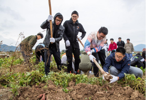实践是最好的课堂,教师的现场讲授之外,学摇橹、挖红薯,学生们从正向的反馈中体验到自食其力的快乐。之后的创业广场的礼堂中,以小组为单位,各代表结合当日的经历纷纷发表自己的感悟,徐锦韬同学以“团结奋斗躬行传承”为主题词代表小组同学分享了要“将小我融入大我”的情怀;特别是郑政,岑杞等同学代表班级将挖来的红薯送到养老院的爷爷奶奶手上时,由衷而来的满足感使他们深刻地感悟到劳动的意义与价值。