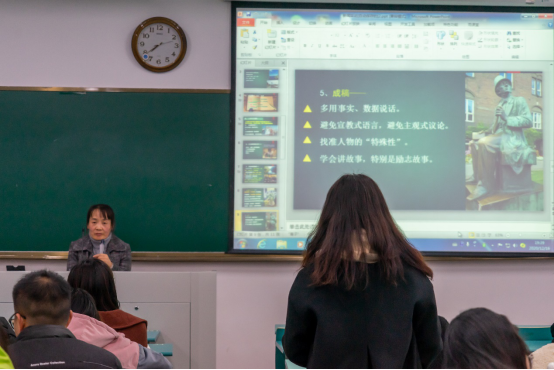 启动仪式后,王鸳珍馆长从采访要求、采访前准备、采访材料的管理、采访的方式方法、成稿及采访提纲六个方面讲解了“人物专访”专题培训。培训伊始,王老师从人物通讯与文学作品塑造人物形象的区别切入,使大家对人物采写有了一个更全面的认识。紧接着,她对“人物采写要求”进行了详细深入的介绍与阐述。