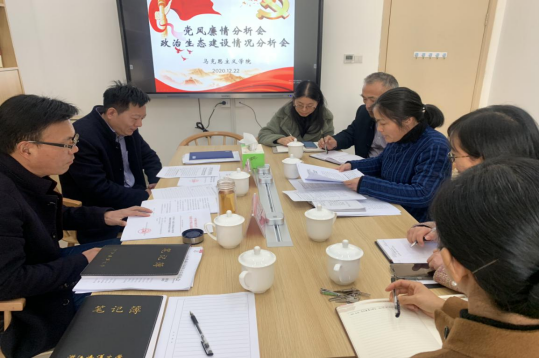 会议的第一项议程是学习党的十九届五中全会精神。学习会结束后,贝静红书记向学校领导详细汇报了学院及个人的廉政状况,同时也就学院的政治生态建设情况进行了汇报。其他党总支委员也结合自己分管的工作、就自己的廉政状况分别进行了汇报。