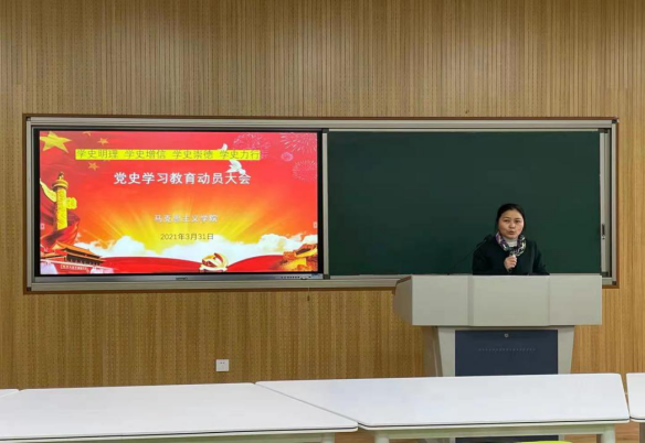 2021年3月31日上午,太阳集团网站8722在新教学楼A203举行了党史学习教育动员大会,并就开展党史学习教育进行了全面部署。会议由党总支书记贝静红主持,全体教职工参加了会议。