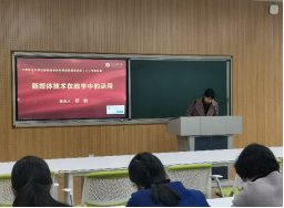 首先,教务处教研科科长郑俏为大家作了题为《新媒体技术在教学中的运用 》的讲座,郑俏老师结合自己制作PPT的经验和技巧,从PPT的配色、文字、图片、素材、录屏等方面着手,以精美的PPT作品为例,生动地演绎了“如何制作出一个好的PPT作品”的整个过程。同时郑老师还给大家分享了一些自己常用的PPT模板资源网站。一份优秀的PPT对于课堂教学内容的展示起着重要作用,郑俏老师的讲座拓宽了大家PPT制作的思路,老师们也深切感受到PPT的精彩魅力。