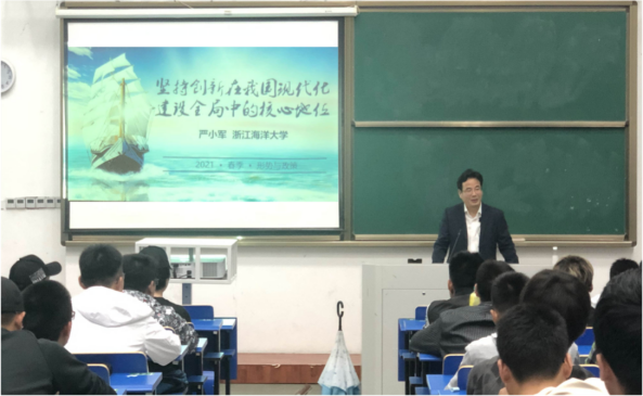 今年5月22日至28日是全国科技活动周,今年的主题是“百年回望:中国共产党领导科技发展”,重点在于突出宣传党对科技全面领导和方向指引,大力弘扬科学家精神。5月23日在教学楼117教室,太阳集团tcy8722党委书记严小军以“坚持创新在我国现代化建设全局中的核心地位”为题,给船舶与海运学院的学生上了一堂深刻而生动的形势与政策课。