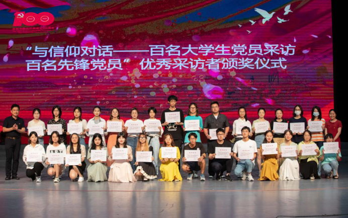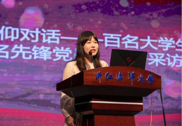 讲党课比赛结束后,活动现场还举行了“与信仰对话——百名大学生党员采访百名先锋党员”主题活动项目展示及颁奖仪式。此活动项目旨在为建党100周年献礼,通过我校100名大学生党员面对面采访舟山市100名先锋党员、挖掘先锋党员身上的先进感人事迹、编撰出版由100篇党员先进事迹报道汇集而成的读物《与信仰对话——风采集》。现场还邀请优秀采访者代表分享她的采访故事、感悟。