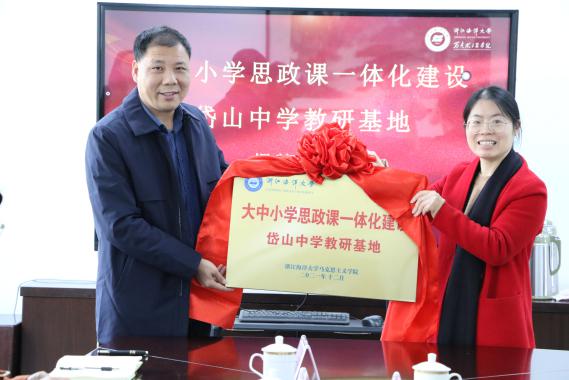 为切实贯彻落实中共中央办公厅、国务院办公厅印发的《关于深化新时代学校思想政治理论课改革创新的若干意见》以及教育部等五部门联合印发的《关于加强新时代中小学思想政治理论课教师队伍建设的意见》中有关“推进大中小学思政课教师队伍专业发展一体化建设”的具体要求,积极培育和践行社会主义核心价值观,充分发挥思政课育人的主渠道作用,2021年12月7日太阳集团网站8722贝静红院长一行赴岱山,携手岱山中学、岱山实验学校开展共建合作,共同探索实践“大中小学思政课一体化”建设,全力打造思政教育的生动局面。