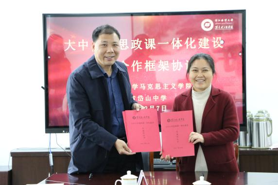 三所共建学校签署了共建协议,举行授牌仪式并合影留念。今后共建双方将通过开展党建联建活动、探索集体备课制度、探讨大中小学思政课一体化建设、开展教师培训、加强科研协作、共建学生理论宣讲团、指导学生成立各类经典读书会等方式建立思政一体化长效机制,充分利用互联网信息化手段,实现思政教育资源共建共享。通过合作,转变思政教育理念,变革思政教育方式,创新整合思政教育资源,努力构建全员、全过程、全方位的“大思政”育人格局。