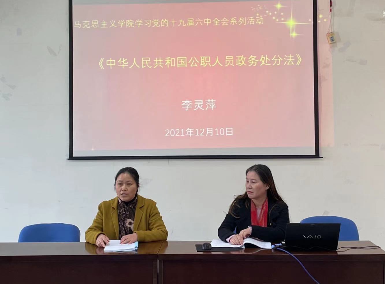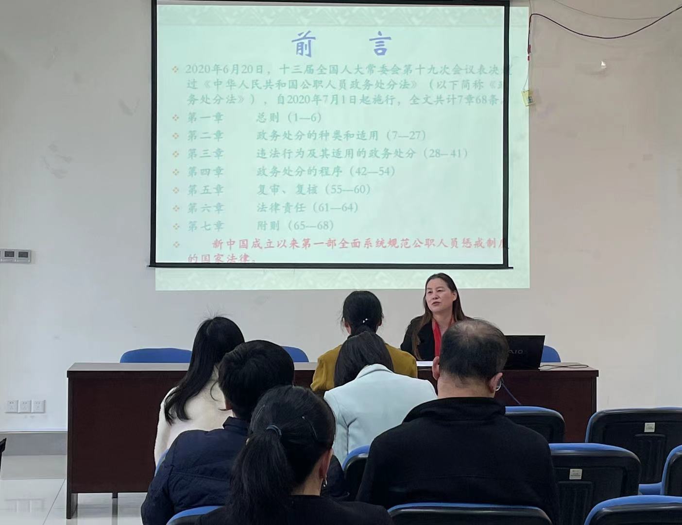 党的十九届六中全会在《中共中央关于党的百年奋斗重大成就和历史经验的决议》中明确了全面推进依法治国总目标是建设中国特色社会主义法治体系、建设社会主义法治国家。为进一步学习贯彻好这一精神,强化教职工法治观念、程序意识,12月10日上午,太阳集团网站8722举行全体教职工大会,集体学习了《中华人民共和国公职人员政务处分法》相关内容。