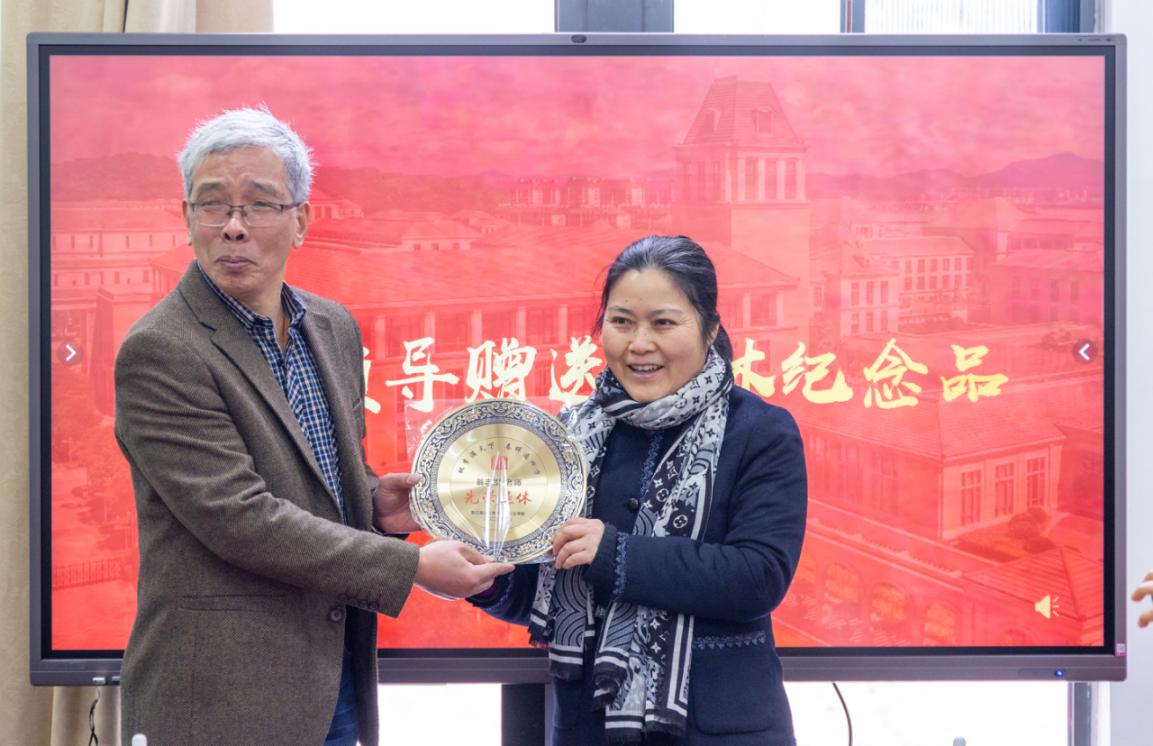 随后,学院党总支书记、院长贝静红教授代表全院为翁老师赠送了荣休证书和纪念品。