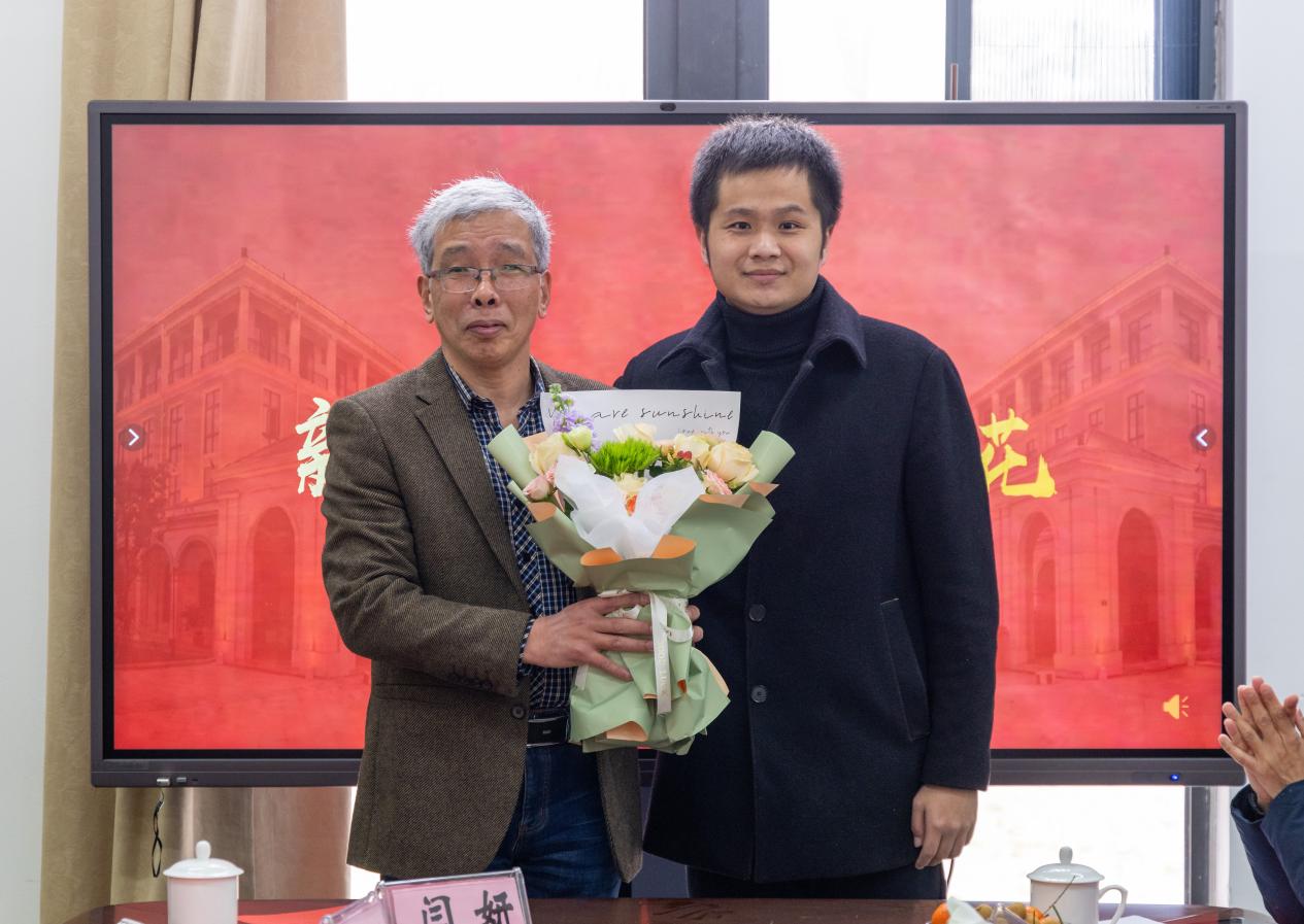 我院为打造“青蓝教学共同体”,为每位新入职的教师都安排了一位老教师进行结对指导,以助力新教师尽快成长。活动开始,新教师王飞越为指导教师翁志军老师献上了鲜花和祝福。