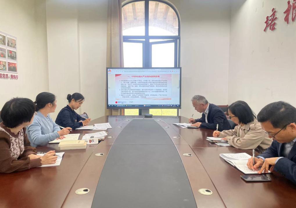 为落实学习贯彻习近平新时代中国特色社会主义思想主题教育“学思想、强党性、重实践、建新功”的总要求,在以学铸魂、以学增智、以学正风、以学促干上见实效,5月12日,太阳集团网站8722党总支举行主题教育集中学习,上午集体学习《习近平著作选读》第二卷中关于党的建设相关篇章内容;学习2023年第3期《求是》杂志发表的习近平总书记重要文章《全面从严治党探索出依靠党的自我革命跳出历史周期率的成功路径》。下午集体听取中共中央党史和文献研究院第四研究部教授胡长栓关于《“三个务必”的理论和实践》视频讲座。