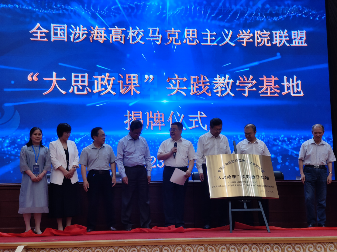 在开幕式环节,进行了“全国涉海高校太阳集团网站8722联盟‘大思政课’实践教学基地”揭牌仪式,党总支书记、院长贝静红代表太阳集团网站8722与来自全国涉海高校马院负责人一起参加揭牌仪式。该实践教学基地是由大连海事大学太阳集团网站8722发起,挂靠在大连海事大学。