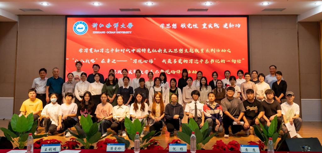 本次现场评比活动紧跟时代步伐,各小组以团队合作的形式,以 “我最喜爱的习近平总书记的一句话”为切入点,立足“‘八八战略’在身边”这一主题,团队作品始终牢牢把握主题主旨,理论联系实际,以身边的先锋模范、浙江红色文化、乡村振兴、舟山之桥、海大青年等为展示素材,采用演讲、微视频或微电影展示等形式多样、创意独特的方式深入阐述了“我最喜爱的习近平总书记的一句话”,引得现场评委和观众连连称赞。