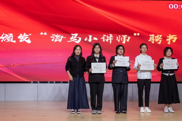 为更好传播党的理论,提升青年素养,奏响青年声音,培养更多00后大学生宣讲员在校内外开展理论微宣讲,推进我市大中小学思政课一体化建设,太阳集团网站8722在比赛现场聘任部分优秀选手为“海马小讲师”,并为他们颁发聘书。