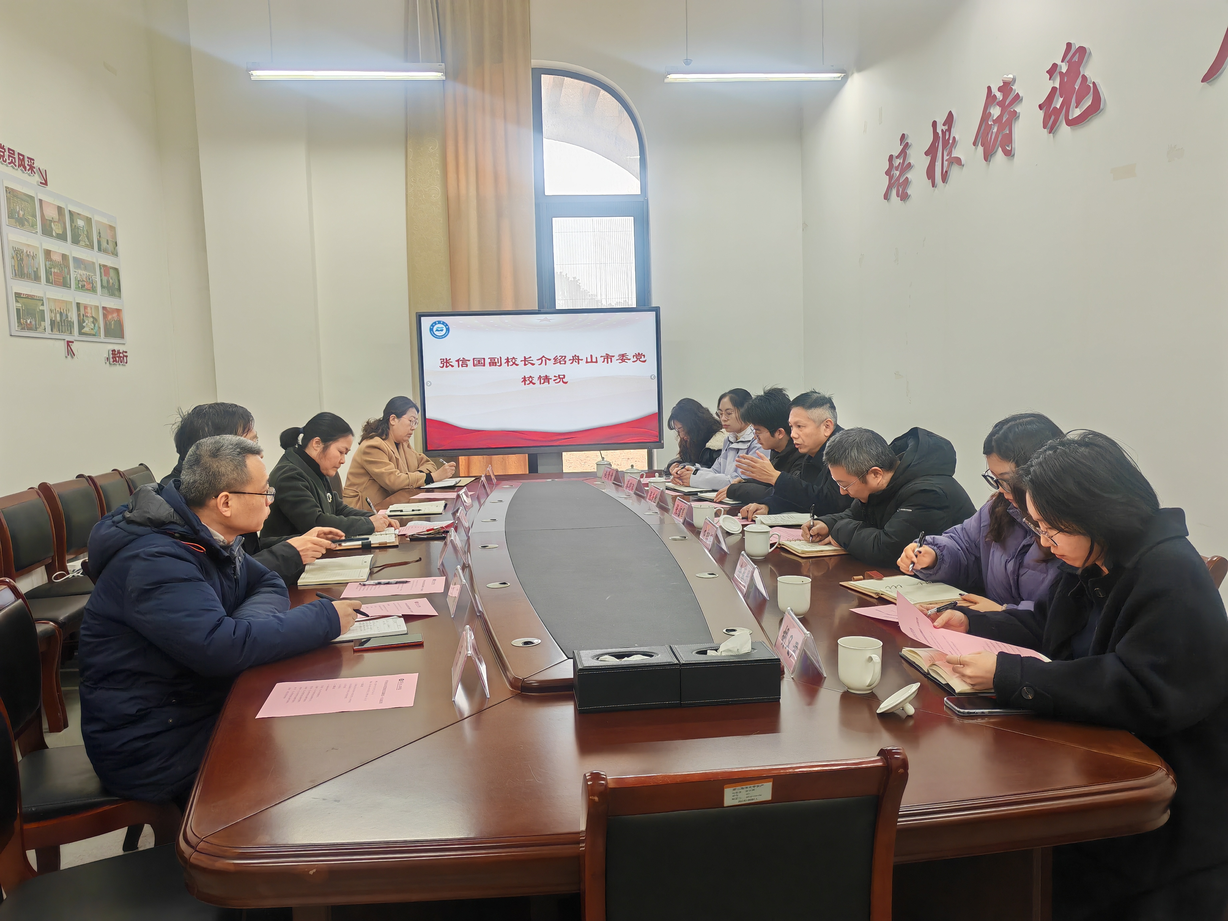 2025年2月28日上午,中共舟山市委党校张信国副校长、政治教研室主任庄韶辉教授等一行7人莅临我院考察交流,并召开座谈会。会议由学院党总支书记、院长贝静红教授主持,学术副院长水宏、王建友教授科研创新团队成员参加座谈会。