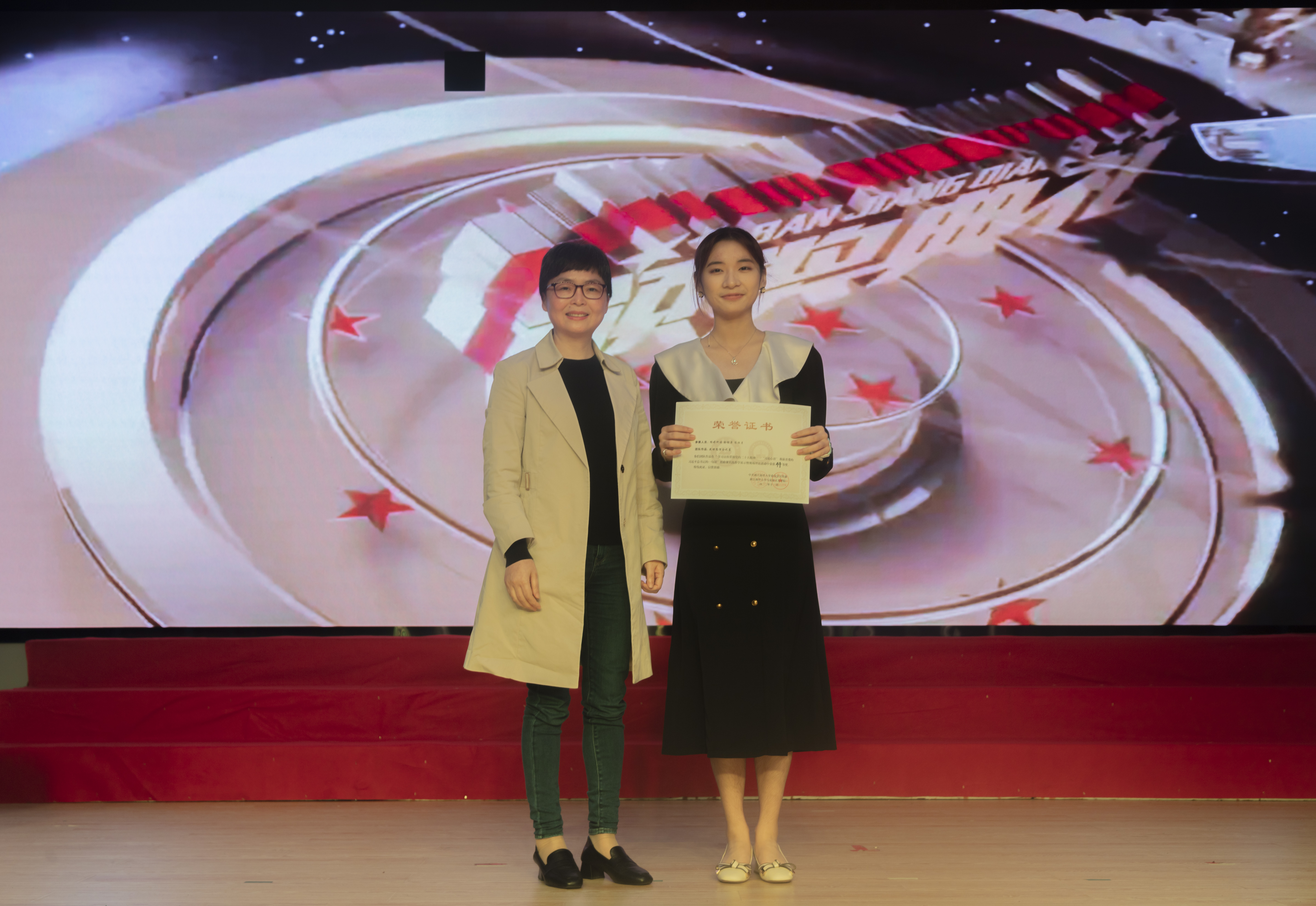 经过激烈的角逐,2021级学生中,A21英语1班陈昭容团队以作品《志存高远,行循自然》获特等奖,A21行政1班黄羽彤团队、A21电气1班陈斌雨团队、A21生科2班方人杰团队分别以作品《我们都是追梦人》、《自古英雄出少年》、《江山就是人民 人民就是江山》获一等奖。2022级学生中,A22生科1班杨婷阿诗团队以作品《筑理想信念之基》获特等奖,G22航海班魏振北团队、A22商英1班陈若雯团队、B22小教1班潘思含团队分别以作品《我们都在努力奔跑,我们都是追梦人》《共同富裕路上一个不能掉队》《以史为鉴,开创未来》获一等奖。其他团队分别获二等奖和三等奖。