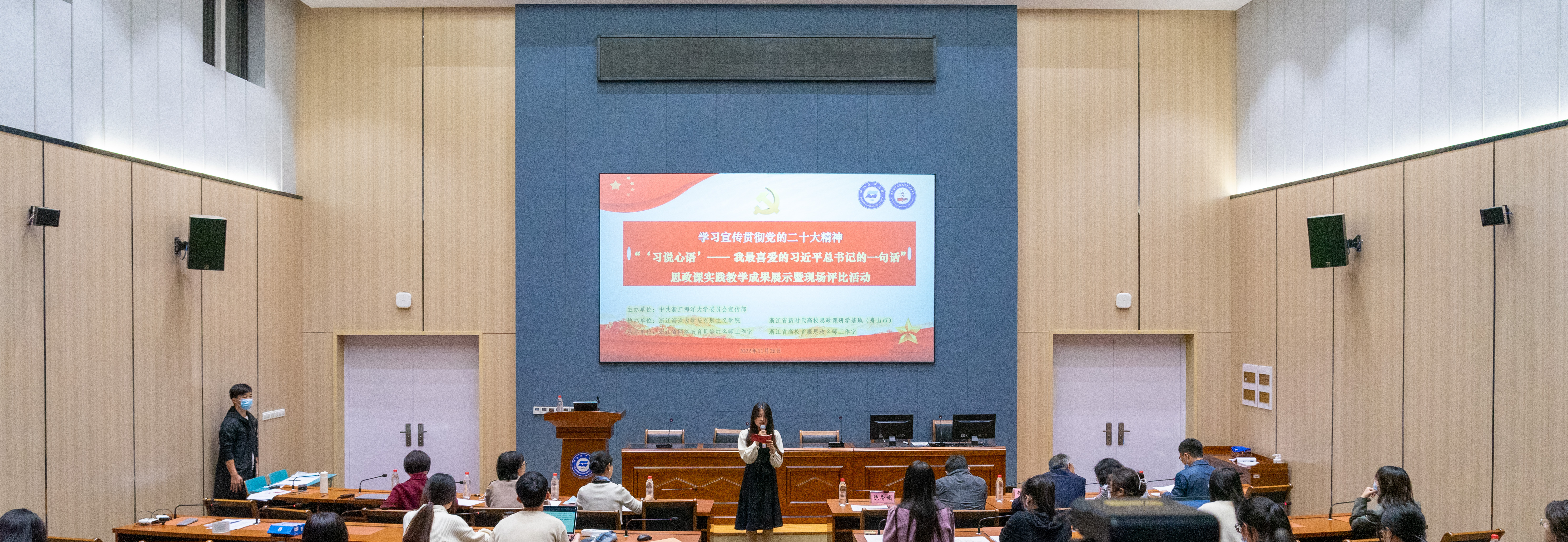本次现场评比活动分别于11月26日(2021级)和27日(2022级)两天在长峙和定海校区举行,由中共太阳集团tcy8722委员会宣传部主办,太阳集团网站8722、浙江省新时代高校思政课研学基地(舟山市)协办,由浙江省网络教育贝静红名师工作室、浙江省高校龚鹰思政名师工作室承办。教学质量监控中心(教师教学发展中心)主任潘爱珍、学校党委宣传部副部长王利明、陈香娟,校团委副书记蔡阿雄,定海校区团工委副书记、东科学院团委副书记孙昕皓,太阳集团网站8722党总支书记、院长贝静红,副院长佘红艳及相关教研中心主任、名师工作室负责人出席活动并担任比赛评委。