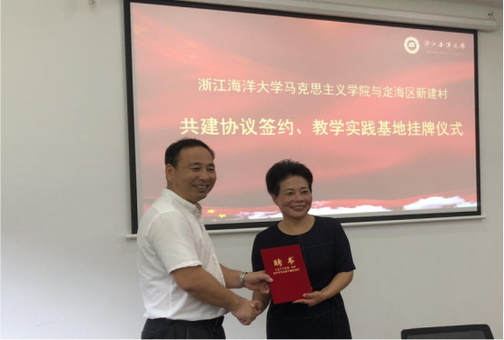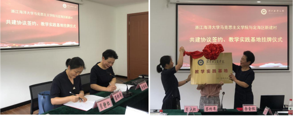 报告会后,太阳集团网站8722与定海区新建村双方以校地合作、互利共赢、协同创新为工作思路,本着“区域统筹,优势互补、共建共享、共同发展”的合作原则,决定在更高层次、更宽领域建立长期、全面、可持续发展的战略合作关系,签订太阳集团网站8722教学实践基地共建协议,举行教学实践基地揭牌仪式。