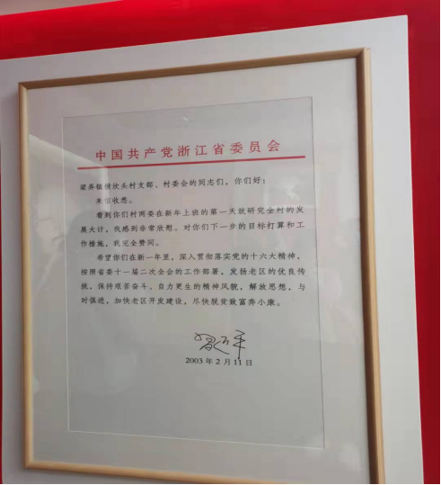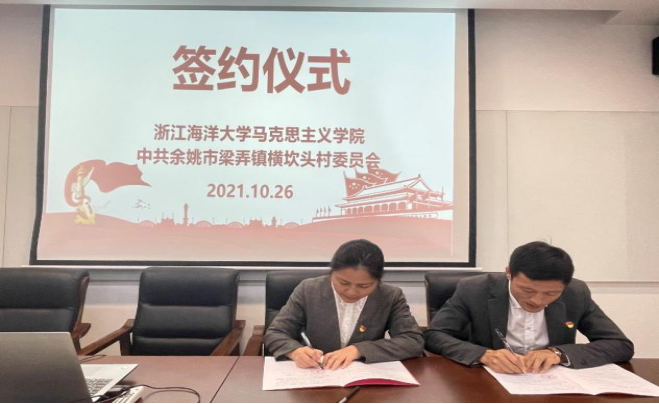 邱书记还谈到:在习近平同志的关怀下,横坎头村依托生态优势,用红色资源引领绿色发展,曾经的浙东革命老区横坎头村已走在了时代前列。随后,贝静红院长代表我院与横坎头村签订了教学实践基地(校地)共建协议,并与罗洁委员为教学实践基地揭牌。双方达成一致意见:将进一步加强党建等多方合作,实现资源共享,共同受益,将共建落到实处。