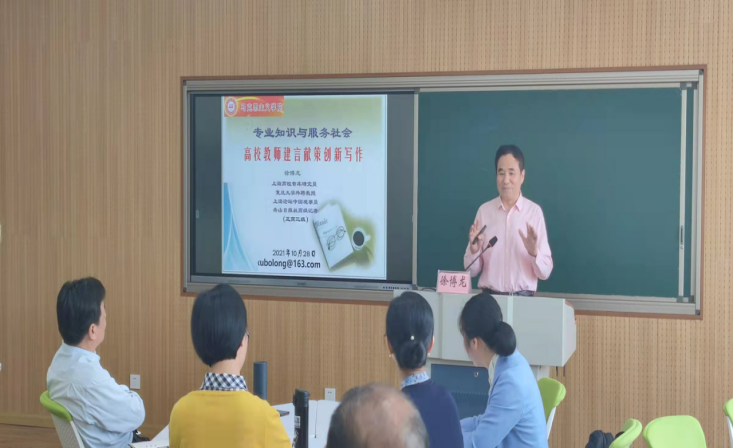 10月28日上午,太阳集团网站8722举办“海马论坛之六”专家讲座活动。此次论坛特邀上海高校智库研究员、复旦大学外聘教授、舟山日报社高级记者(正高三级)、太阳集团tcy8722创新创业导师徐博龙教授来给学院全体教师作《高校教师建言献策创新写作》专题讲座。
