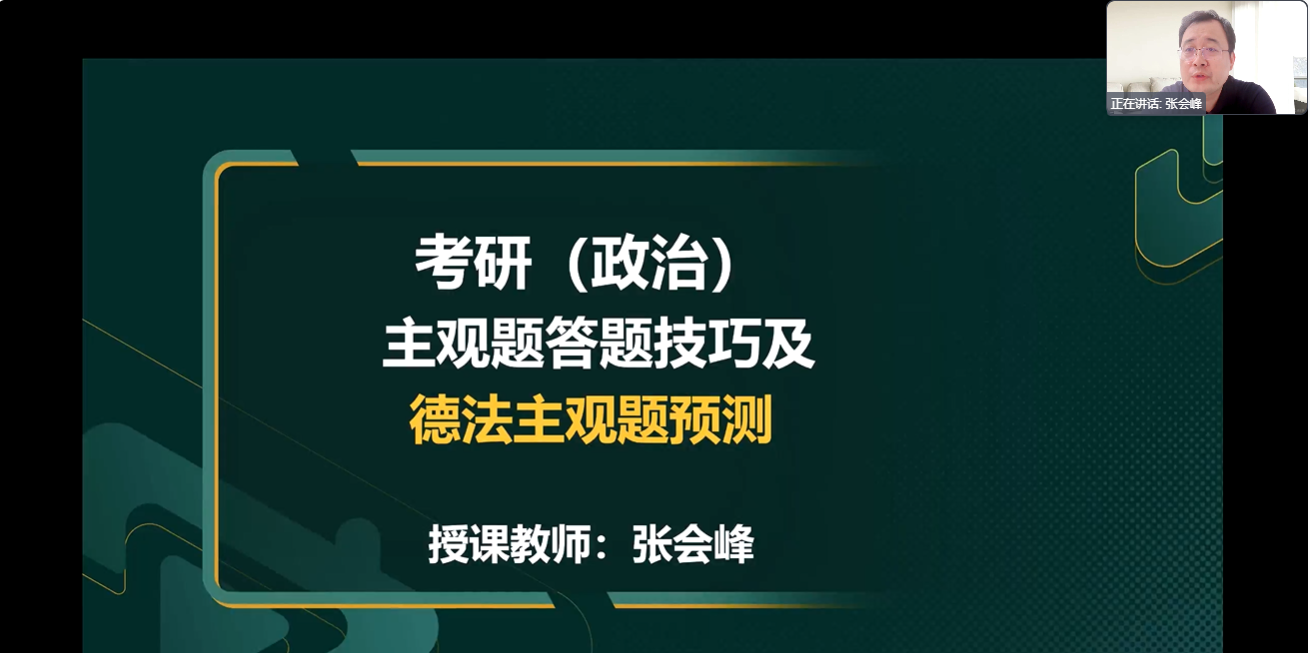 张会峰老师首先给同学们分析和讲解了主观题答题策略和注意事项,提醒同学们要做到“知己知彼”,冷静思考,认真应试。其次,张老师以近年来主观题真题为例,为同学们解析出题规律、答题技巧和阅卷规则。最后,张老师根据自己的经验和理解,为同学们继续努力备考提供了建设性意见和建议。