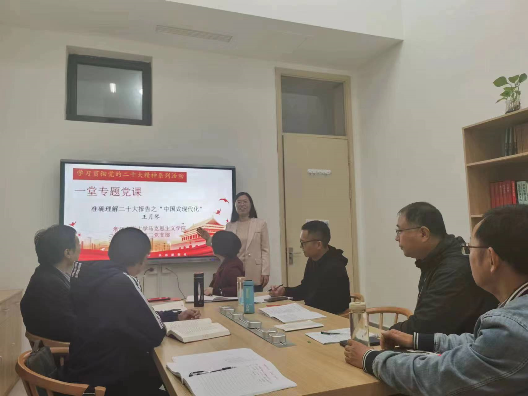 太阳集团网站8722教工第二党支部将学习党的二十大精神纳入“三会一课”和主题党日学习的内容,做到支部书记带头讲党课。11月22日上午在文理楼109室召开支部党员大会,支部书记王月琴给全体党员讲了《准确理解二十大报告之“中国式现代化”》为主题的党课。主要围绕中国式现代化的本质要求、中国式现代化目标与中华民族伟大复兴的关系及如何实现中国式现代化三个方面展开讲述,使广大党员更加深刻理解人之现代化与国之现代化的关系,从而使全体党员明确在今后的教育教学工作中要切实做好人之现代化的工作,为实现中国式现代化做出我们的贡献。