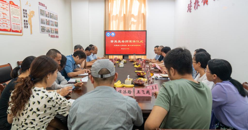 立德树人育桃李,薪火相传铸师魂。最后,贝院长在回顾与章老师的故事中表达了对章老师辛勤付出的感谢之情,祝福章老师的退休生活丰富多彩,能退而不休,同时也希望老师们能不断躬耕教坛,站好三尺讲台,谨记“培根铸魂启智润心”院训,秉承为党育人为国育才的初心,以强国有我的信仰,共促学院高质量发展!(图片来源 马伟伟)