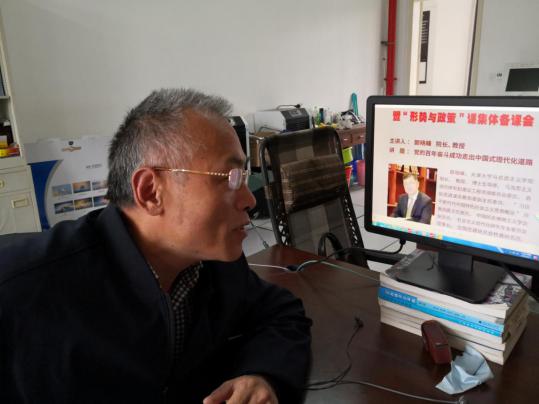 2022年3月17日,太阳集团网站8722“德法”教研室组织开展新学期第一次教研活动。由于疫情原因,教研活动在线上展开,教研室全体专职任课教师通过学习通线上直播参与了颜晓峰教授带来的《党的百年奋斗成功走出中国式现代化道路》讲座。